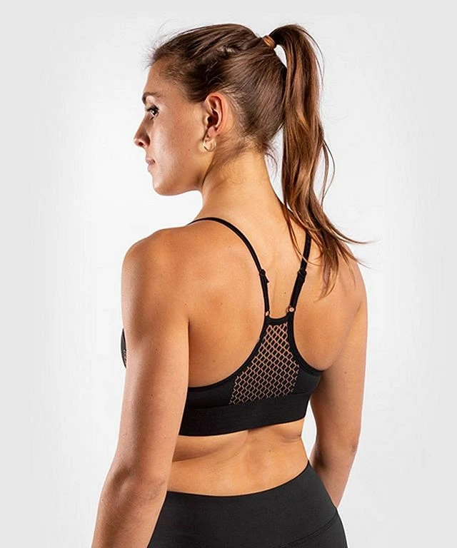 La brassière Tecmo sfoggia due piccoli loghi Venum in silicone lucido sulla parte davanti.